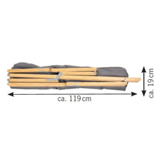 Ce fauteuil pliant en bambou, avec son rembourrage confortable et son tissu gris chiné, offre un excellent confort d'assise. Pliable et léger (5,7 kg), il est facile à transporter grâce au sac inclus. Solide, il supporte jusqu'à 120 kg. Dimensions : 75 x 100 cm, hauteur d'assise de 43 cm, dossier de 70 cm.